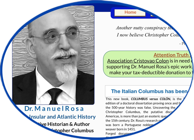 Association Cristóvão Colón is a non-profit organization created to aggregate funds to assist Dr. Manuel Rosa in his continued scientific research of Christopher Columbus' life and the propagation of that award-winning research through lectures, media and printed materials.
